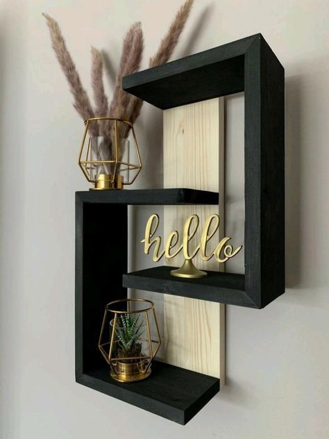Add a modern touch to your home with this geometric wall-mounted display shelf. Its sleek black design and open compartments provide the perfect platform for displaying decor, small plants, or treasured items